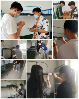 为迎接2020级本科和研究生新生,保障同学们身体健康,创建整洁卫生的宿舍环境,材料学院与工程学院分别于9月3日14:30至16:30、9月4日16:00至19:00安排研究生会和学生会对研究生及本科生新生的宿舍进行消毒与安全检查。工作人员对各寝室地面、床底、门角处等喷洒消毒液,检查钥匙是否使用正常,寝室用器的是否符合要求。过程中工作人员积极工作,消毒、检查工作进展顺利,保质保量完成工作。