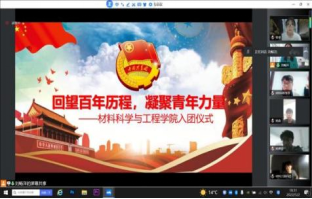 为贯彻落实习近平总书记系列重要讲话精神,深入推进共青团改革,加强共青团队伍建设,切实增强团员对共青团组织的荣誉感、归属感和认同感,以良好风貌迎接建团100周年,材料科学与工程学院团委于2022年5月2日晚6点举行入团仪式。学院团委副书记魏东老师、新发展团员和各年级团员代表参加了本次入团仪式。