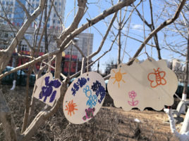 完成树牌制作后,志愿者带着孩子们来到室外花园,孩子们踮起脚尖,将树牌挂在枝头。微风中,彩色树牌在微风中轻轻摇曳,仿佛在诉说无声的感谢。“这是我的树朋友”,孩子们激动地说到。