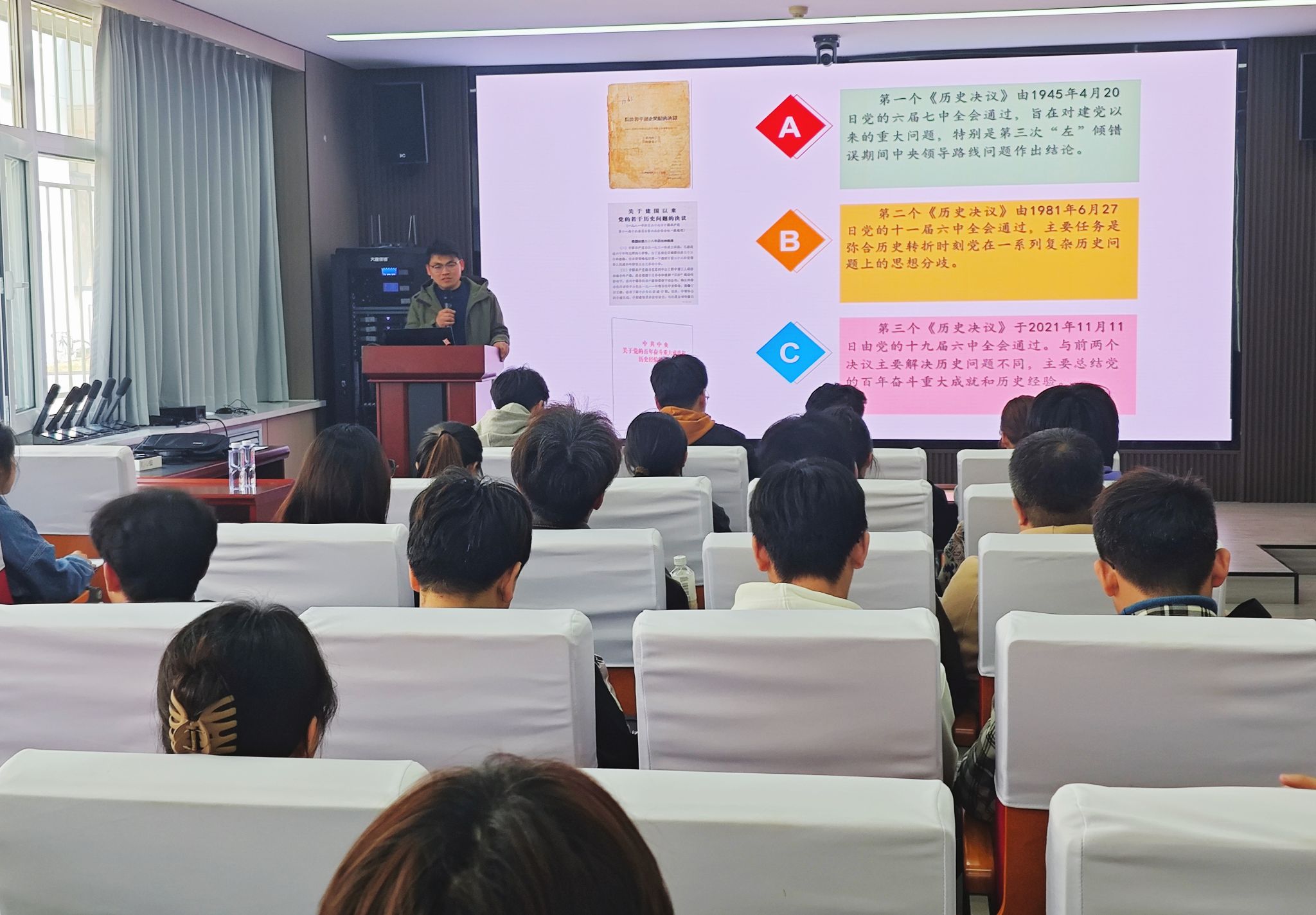 为深入学习党的三个重大历史决议,引导青年学生深刻把握党的历史经验与未来发展方向,4月10日下午,材料科学与工程学院分党校邀请马克思主义学院杨新宾教授在材料学院行政楼113会议室以《三个历史决议与中国共产党总结历史经验的基本方法》为主题,为学院24名发展对象和41名学生党员讲授专题党课。