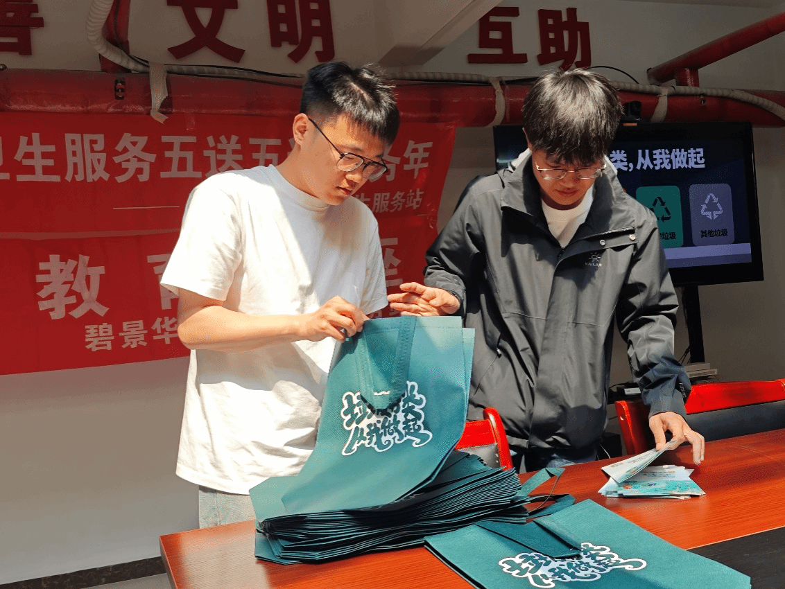 活动现场,同学们为社区居民发放端午节香囊材料包,耐心讲解材料的使用和制作步骤,和居民们共同DIY制作香囊。他们热心地为年龄大的老人们“穿针引线”,大家精心挑选艾草等天然香料,认真细致地缝制,将传统节日元素与自己的创想巧妙融入到手工设计中,将端午节的祝福融于香囊之中。同学们围坐在老人身边,共叙家常,气氛温馨融洽。毕业生党员还为社区居民分发垃圾分类宣传单,讲解垃圾分类重要意义,让居民们深刻认识到垃圾分类对环境保护和资源再利用的重要性。