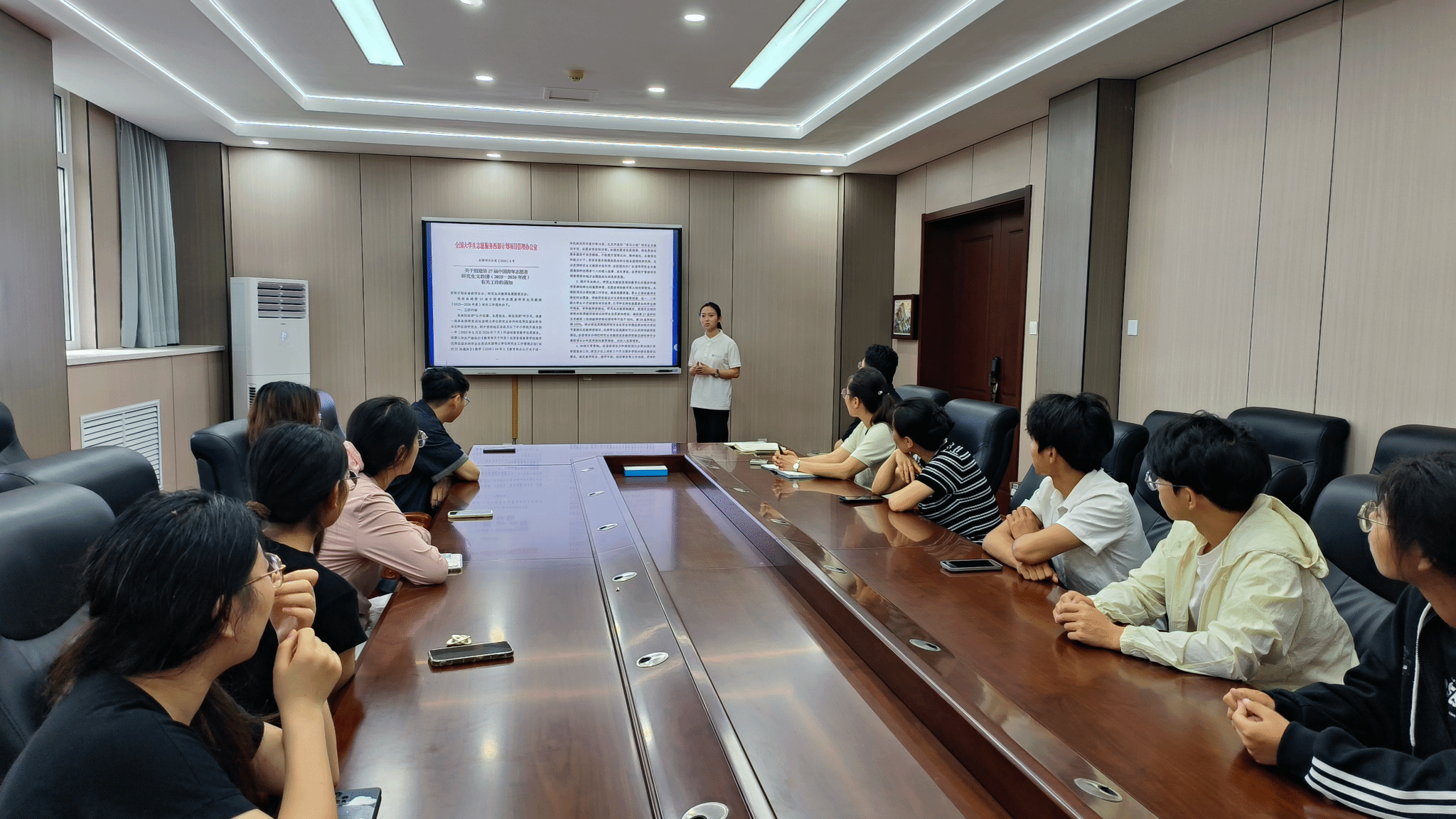 会上,赵雅函作为乌鸦传媒第27届研究生支教团成员,向在场师生深情讲述了自己投身西部教育的初心。她提到,从大一时聆听往届支教团学长学姐的分享,到亲身参与乡村教育调研,支教梦想的种子逐渐生根发芽。“研支团不仅是一份荣誉,更是一份用一年时间做终身难忘之事的承诺。”她详细介绍了研支团的招募流程与选拔标准,特别强调,研支团选拔不仅看重成绩排名,更将“是否真正理解西部需求、能否扎根基层”作为核心标准。最后,她鼓励学弟学妹们要以“专业能力、家国情怀、奉献精神”为指引,积极参与志愿服务,让青春在祖国需要的地方绽放光彩。