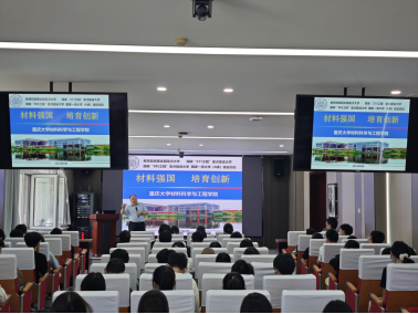 随后,陈泽军校友以饱满的热情和深厚的情感,对重庆大学材料科学与工程学院进行了简要介绍。学院拥有一支由院士领衔、高层次人才汇聚的优秀师资队伍,通过国家镁合金材料工程技术研究中心、高端装备铸造技术全国重点实验室等一流科研平台的支撑,学生们能够亲身参与到前沿的科研项目中,将所学知识应用于实践,锻炼出扎实的专业技能和创新思维。针对学生普遍关注的职业规划问题,他提出三点建议:一是夯实基础,在交叉学科中拓展视野;二是直面挑战,将个人理想融入国家需求;三是坚守初心,以“十年磨一剑”的定力追求卓越。