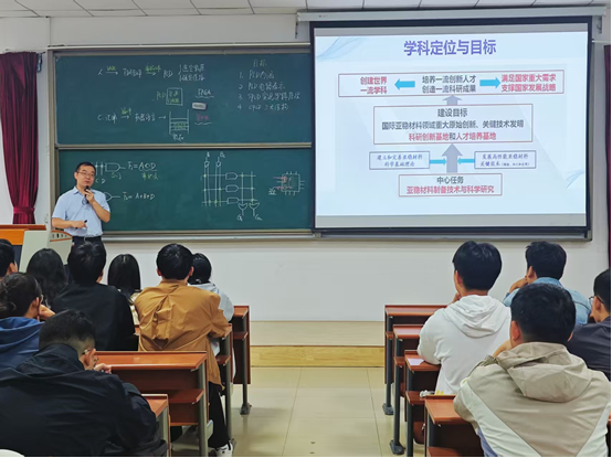 活动伊始,赵元春副院长以亚稳材料的机遇与挑战为切入点,如一位领航者般,引领新生们穿梭于学院的发展历程与科研脉络之中。在他的讲述下,学院的研究特色与标志性成果如同一幅幅生动的画卷,在新生们眼前徐徐展开,让他们深刻领悟到亚稳材料在国家战略需求中的独特地位与非凡价值。导师团队所取得的丰硕科研成果,更是如同一座座灯塔,照亮了“从0到1”的科研创新之路,激发了新生们投身前沿研究的无限热情。赵元春着重强调,研究生培养应注重“创新思维+实践能力”的双重锤炼,鼓励新生们将个人兴趣与国家材料战略需求紧密结合,勇攀科学高峰。