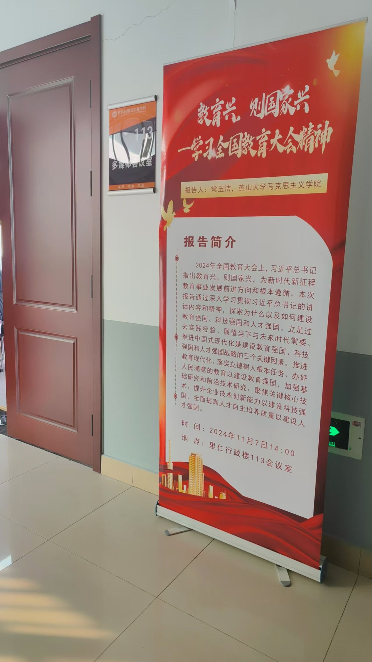 为深入学习贯彻习近平新时代中国特色社会主义思想,围绕立德树人中心环节,聚焦课堂教学重点难点问题,进一步发挥马克思主义理论学科优势,结合学科特点和专业特色,深入推动专业课教师与思政课教师双向沟通与交流,不断提升课堂教学质量与实效。材料科学与工程学院联合马克思主义学院联合举办课程思政与思政课程“双向融合”教研活动,扎实推进主题教育,2024年11月7日马克思主义学院常玉洁老师在里仁会议室113作“教育兴,则国家兴——学习全国教育大会精神”专题讲座。材料学院教学院长梁永日主持,材料学院党委书记王国伟和材料学院教师参加会议。