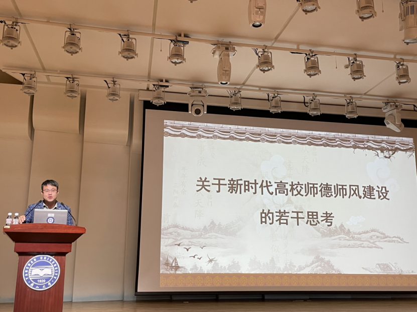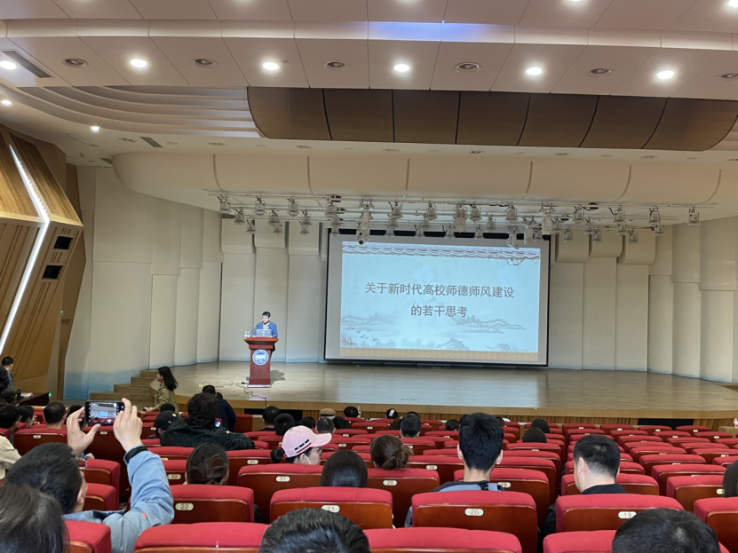 接着,陈步伟教授从新时代师德师风建设的重要意义、违反师德师风的现象及根源、相关法律法规、新时代争做“大先生”四个方面,具体讲述了师德师风的影响,以及用一些典型案例为老师们敲响警钟,提醒老师们要谨言慎行,修身、修心,不断地学习进步,才能成为一名合格的高校教师。